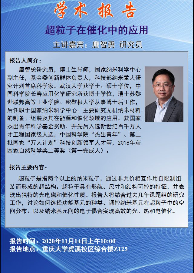 超粒子在催化中的应用 唐智勇研究员